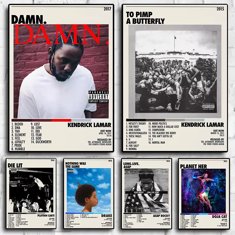 Music Album Star Hot ASAP ROCKY KENDRICK LAMAR 80S Retro Rap Poster Hip Hop Posters for Living Room Painting Art Home Wall Decor